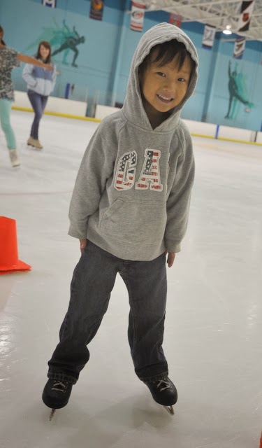 Ephram held on to a bucket most of the time and would take breaks to hang out with me but then he'd go back out on the rink. A few times he even skated without the bucket.