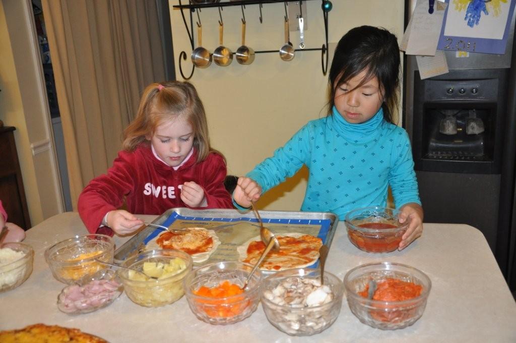 Gracie and Emily Ruth experienced 'make your own pizza' for the first time that night! Their reaction cracked me up because I found out that the whole time they thought it meant that they would put their own pizza in the microwave:). Sweet Leslie does NOT cook or like to cook so thankfully she thought it was just as funny!